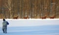 サラブレッド軍団 空からの聞きなれない音とヘリに反応してます