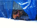 雪の上に出る?かどうか悩んでいるボリスたち^^