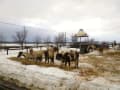 ②脱走ボリス こぼれた飼い葉の麦を探しているようです