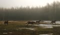 18日 霧の中の朝 サラブレッド軍団が駆けて戻ってきます