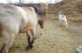 朝の飼葉食べ終えて帰るミザルーと大豆の図