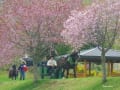 桜が綺麗ですネ お天気にも恵まれて最高の馬車日和