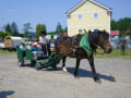 モモは自走 ミニーは会場まで馬運車で到着 会場で馴らしです
