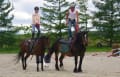 夕暮れ近く 浦河で育成馬に乗っているFさんがお友達と寄ってくれましたよ~