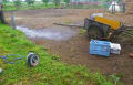 ネット外して丸太と枕木産める穴掘って 大掛かりです