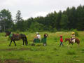 放牧地で乗るHaru&Toshi姉弟 手綱さばきも達者になりました