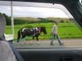 買い物に出ると 歩道をみちゃんとミニー馬車が歩いて居りました
