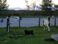 ダッシュで帰ってくるきなこと奥はレイラ 一日草刈御苦労さま