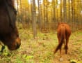 午前中 ギネスとサラを森へ散歩に連れ出しました