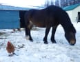 ブルで除雪中の旦那 飼い葉食べ終えたレオが戻るところ