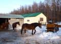 10日 気持ちの良い快晴の空の下で乾草を食べる馬達