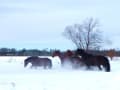 雪が深い所で遊ぶサラブレッド軍団