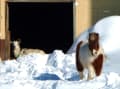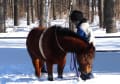 マリー 腹帯付けてみました パドックはまだ雪がこんな感じで深いです