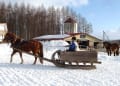雪で地面が上がっているので馬の位置が高い