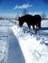 モモトリオ 遊んでいますが雪掻きに興味津々のモモ