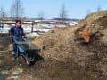 堆肥場にボリス達がミミズ探しにきてます 掘り掘り!!!