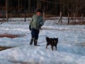 ご機嫌に帰ってきた大ちゃん ビビの散歩と薪運びが担当です
