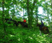 お2人は乗馬初だそうでミザルーで旦那がナビとモモの尻尾にガロを繋いでけん引