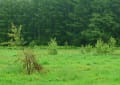 サラ軍団の放牧地の草刈り中 楽しみに成長を観て居る白樺の苗木が何本か派手に居られています