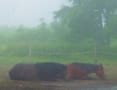 28日 霧に包まれて肌寒いくらいの朝です モモと美楡並んでお休み中です