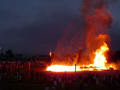 御柱に松明がくべられて大きな炎の塊になります 海側か山側に倒れるか 豊漁か五穀豊饒か?