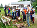 持って帰った丸太の皮剥きや昔の鋸で切ってみたり交代で全員が体験しました