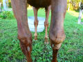 レオが小さな擦り傷から感染して右後肢飛節がパンパンに腫れて歩行困難に…