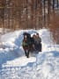 帰りは元気いっぱいのミザルーが先頭で駆けてきました 深い雪の中で野駆け足体験です
