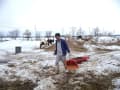 雪が解け始めるので洪水になる前に撤去 午後には小川が出来ています