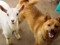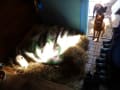 サラ 巨体を横たえて良い顔です ボリス達のご飯時間 興味津々覗きこんでいるサラ
