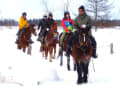 丁度キタキツネが雪原を歩いていて喜ばれていました♪ 馬とキツネのコラボ