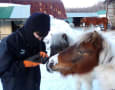 ポニーパドックの乾草配りに行くとピースが挨拶に^^
